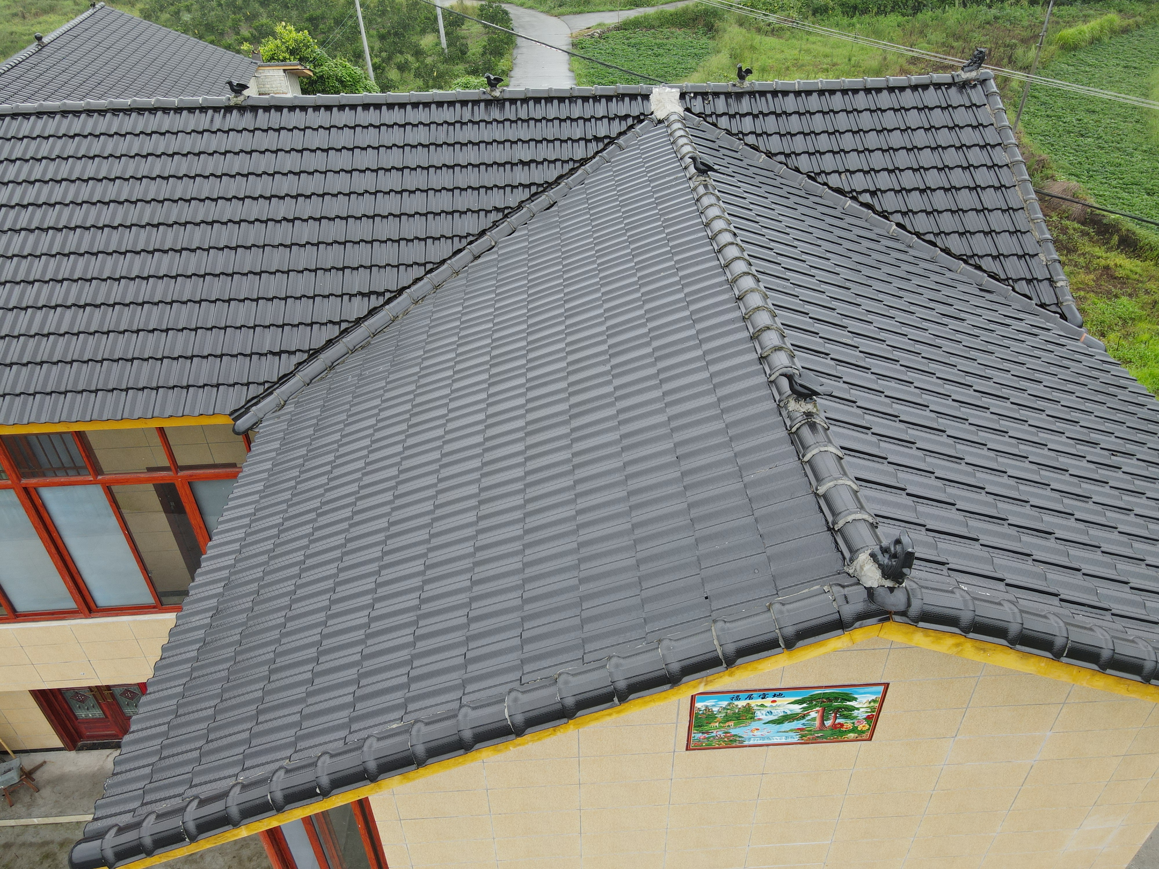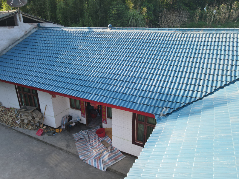 • 星心無(wú)縫瓦-孔雀藍(lán)上房效果